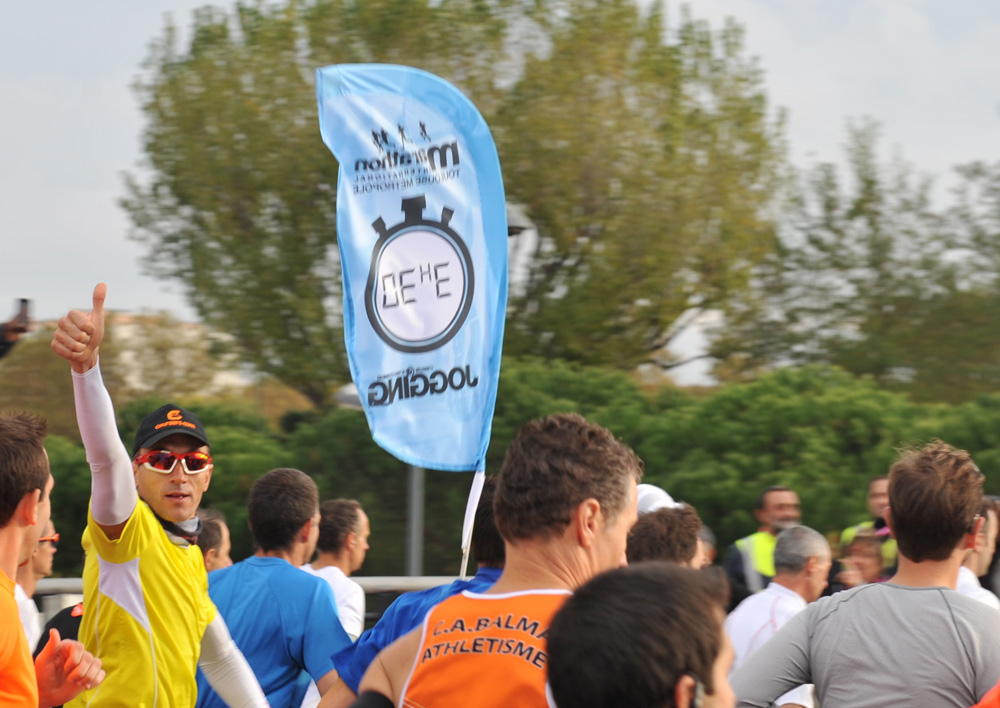 Pour le marathon de Toulouse le 23 Octobre dernier, nous avons donc rejoint Sébastien Sicard, l’attitude fière et déterminée, sur la ligne de départ (mais de l’autre côté des barrières) !